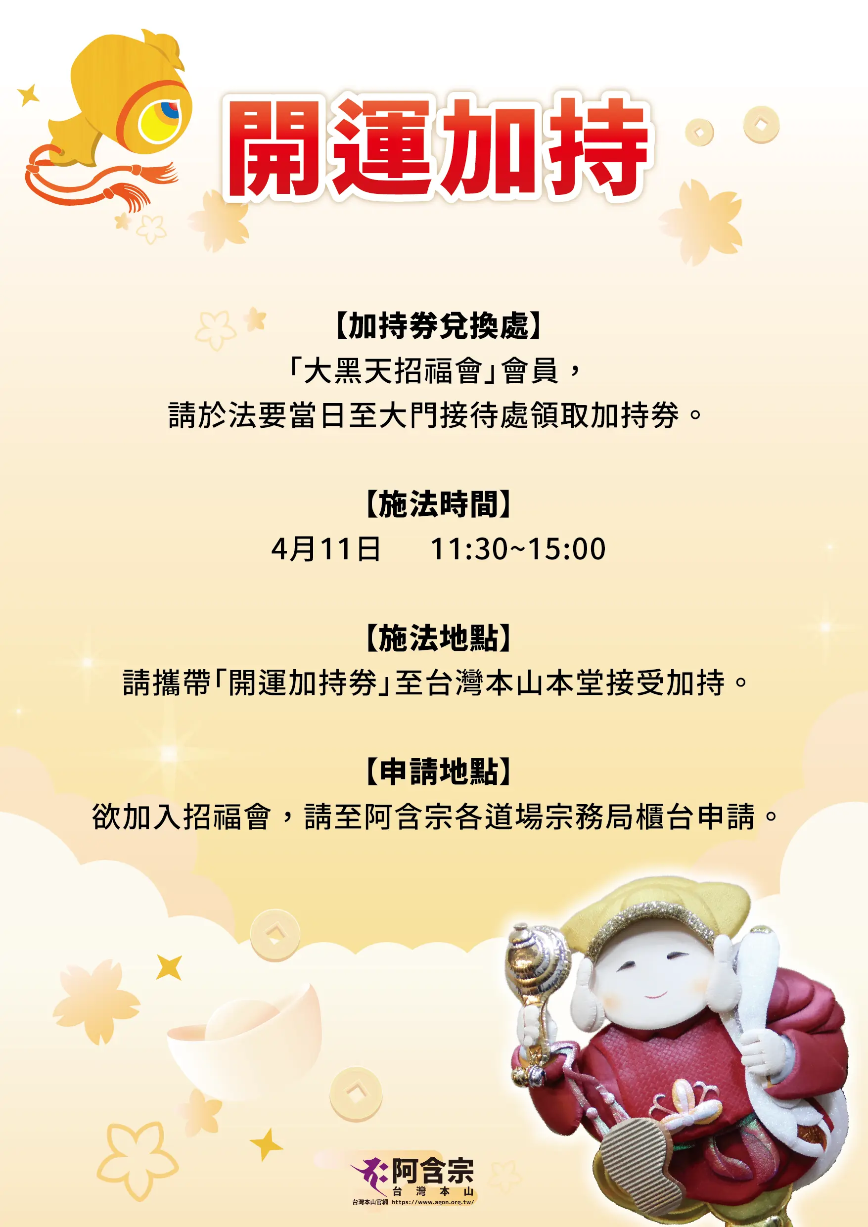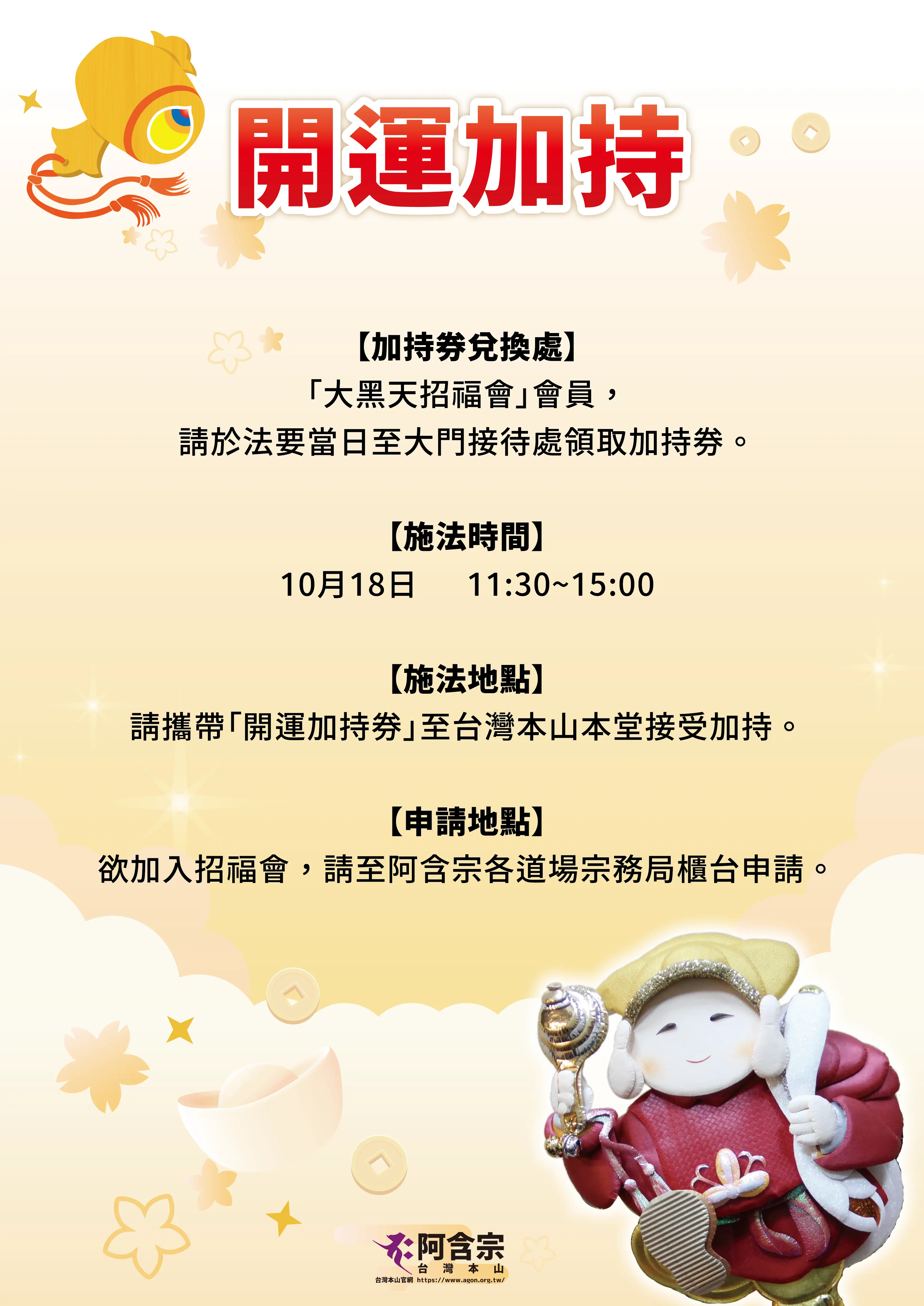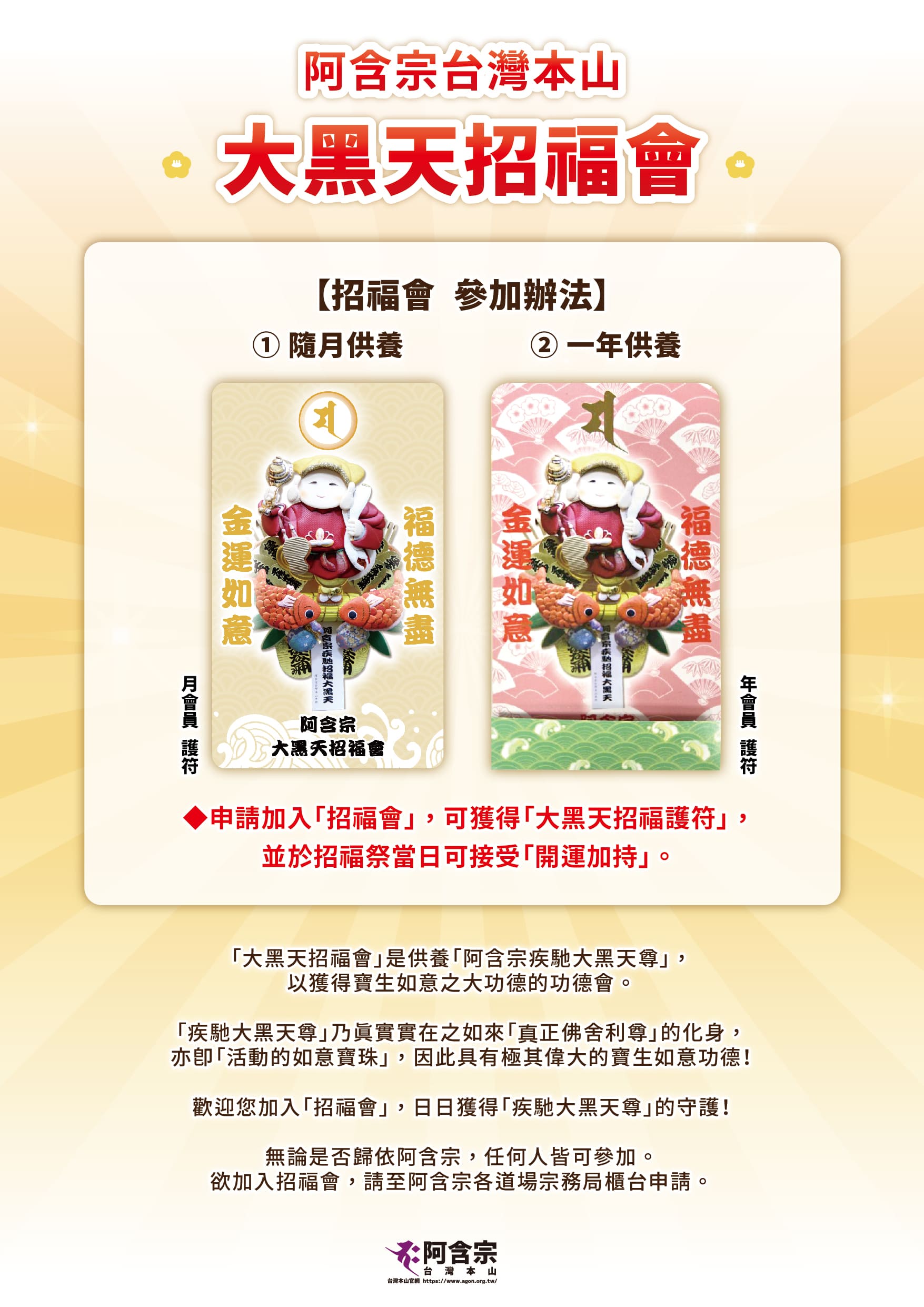 加入「招福會」,獲得招福秘法日日的守護,可接受「開運加持」。