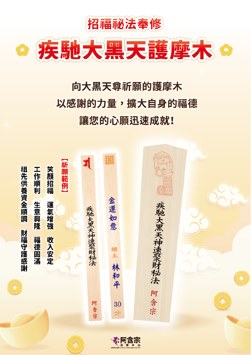 祈禱大黑天尊賜予守護,讓心願迅速成就。