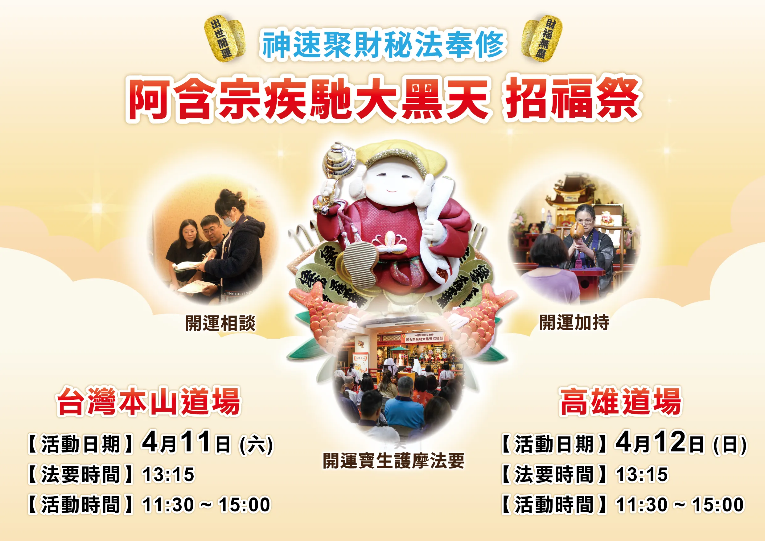 • 開運寶生護摩法要(13:15 ~ 13:45)